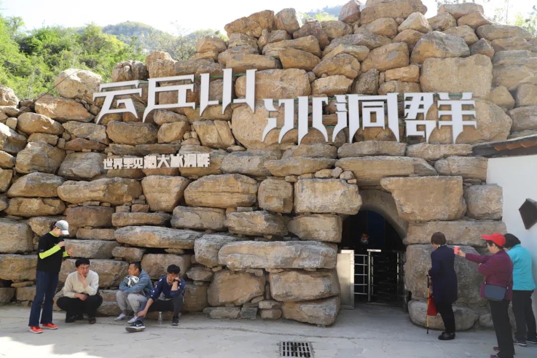 过了桥,大家稍做休息,进入了万年冰洞群,洞内晶莹剔透,寒气逼人。据专家考证,云丘山冰洞形成于第四季冰川期,距今已有300多万年,它的规模在世界范围内都是极为罕见的自然景观。大家看着冰洞内诸多的冰笋、冰柱、冰锥、冰葡萄,不禁赞叹冰洞景色美轮美奂,犹如仙境。