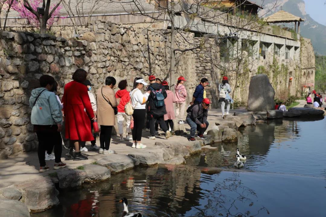 经过4个多小时的车程,上午10时抵达目的地云丘山,采风活动正式开始。时值春日,云丘山满山春色,山间百花争艳,四处草色青青,树木苍翠,山环水绕,景色宜人。天空中一层淡淡的薄雾,远处起伏的山峦尽收眼底,青黛婆娑,苍松翠柏,飞瀑流泉,古木参天,吸引了大家的目光。为了节省体力,大家选择索道上山,下索道直接游览云丘山精华景区。沿着石阶一路向下,在林荫掩翠的山路上,有奇特的喀斯特地貌,奇山地貌连绵不绝,比如神塔叠翠、云海藏龟、绝顶晴岚、张公背婆、老君葫芦、双虎守院、栓马石桩、金鸡报晓和仰天巨神等自然景观。大家流连在自然美景中,看着一幅幅油画般的美景,不时拍照留念,把眼前的风光定格成了美好的瞬间。