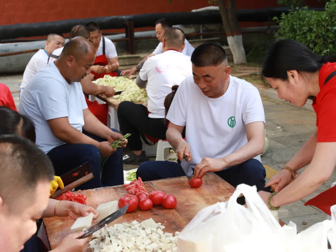 他们系着围裙,脖子上挂着毛巾,站在灶台前、火炉旁,顾不上擦滚下来的汗珠,精心地准备着各种小菜、炒着香喷喷的过油肉、大烩菜,搭着一碗碗细长细长的河捞面,切着又大又圆的西瓜,热情地招呼着检修师傅们,先来吃一块西瓜,再吃上一碗面,劳累瞬间一扫而光。