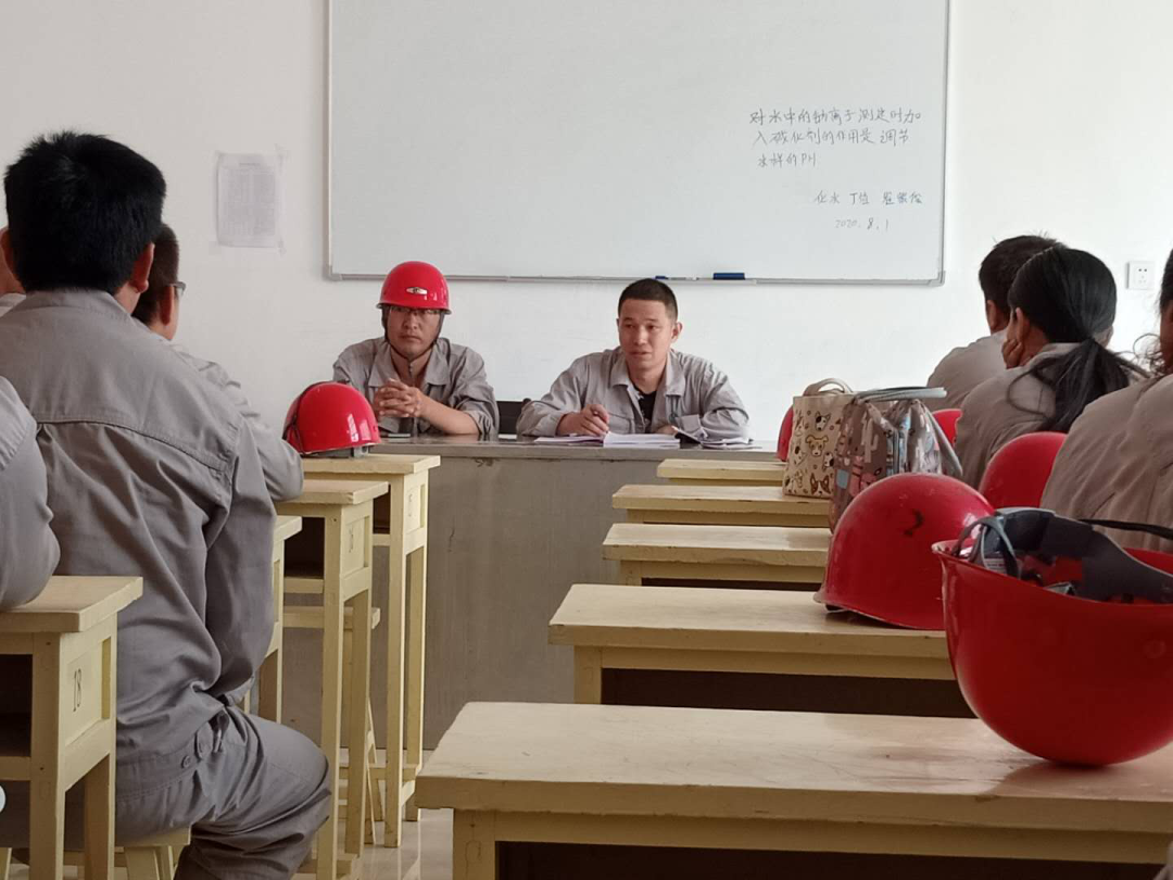 每天的班前会他都会学习公司分厂的各项管理制度,传达公司及分厂的工作精神,总结前一天的工作得失、安排当天的工作,反复强调生产过程中的重要问题及班中严禁携带手机、烟火等不规范行为。
