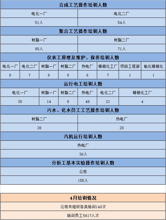 公司4月20日—4月26日员工培训情况公示