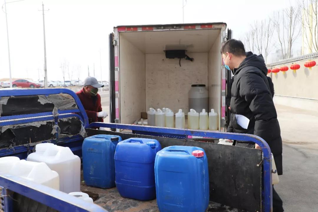 2月2日,为太谷县南城区党工委管委会免费发放1吨次氯酸钠消毒液。