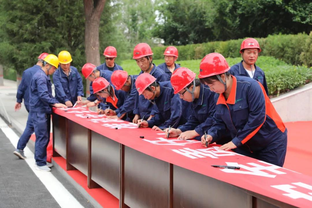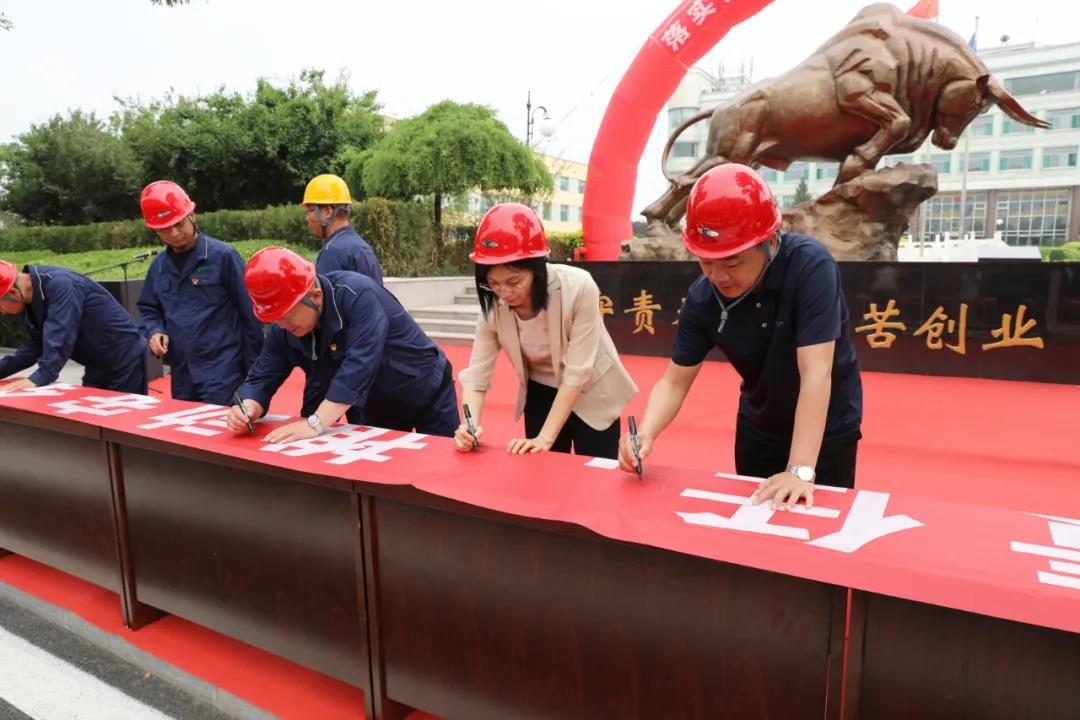 第三项,县领导、公司领导、员工代表在“落实安全责任,推动安全发展”主题条幅上表决签名。