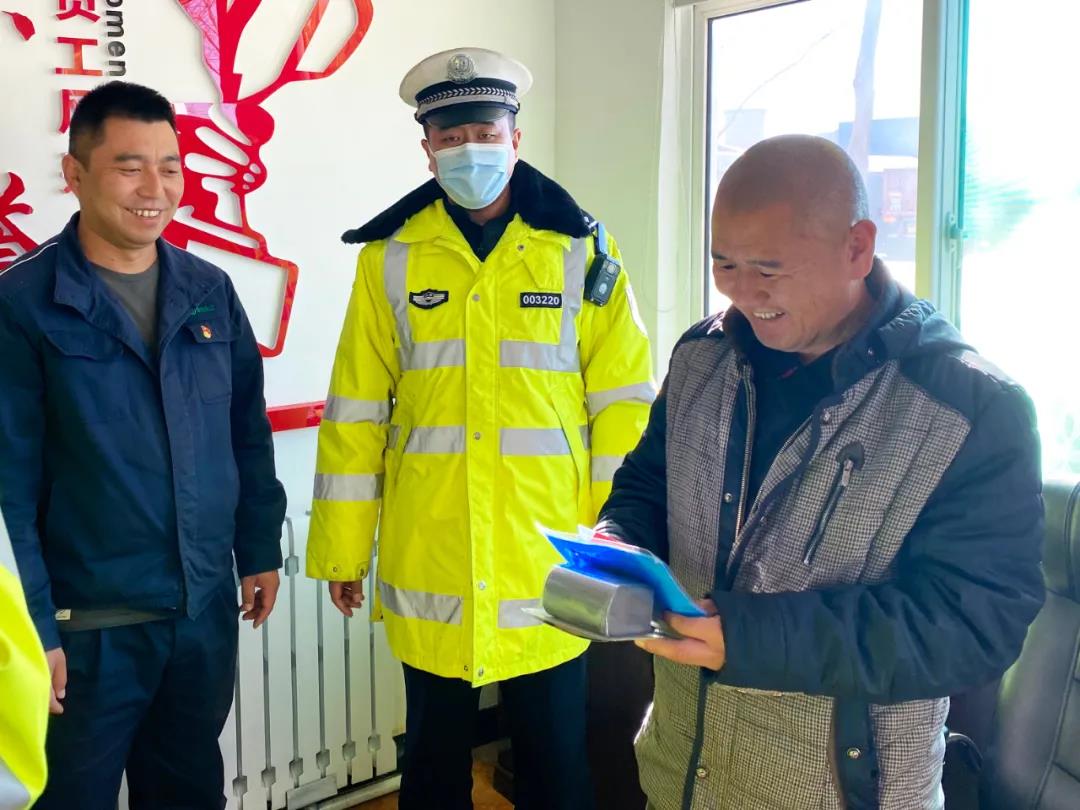 11月30日,榆社县南口中队长李波带队到我公司远安物流开展122“全国交通安全日”宣传活动。