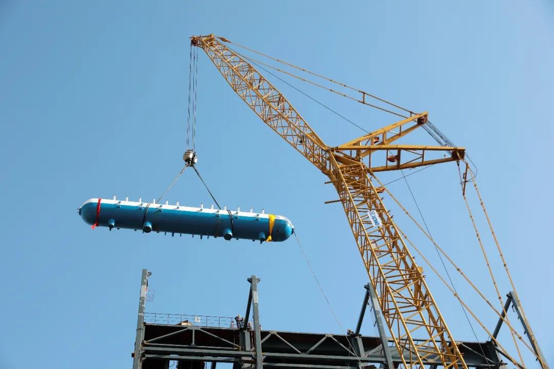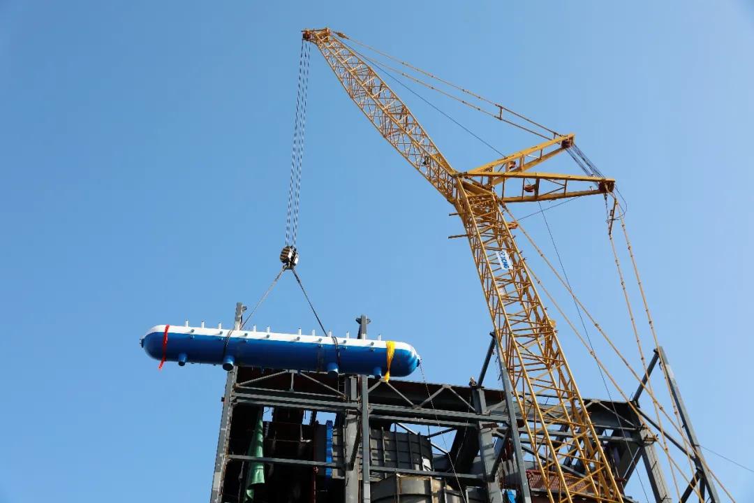 汽包是锅炉的主要部件之一,因其体积与重量大,安装位置高,所以汽包吊装成为项目施工中最大的难点之一,同时也是推进施工进度的关键。汽包的顺利就位,标志着热电联产项目的安装任务完成将近一半,全部抢回了因疫情延误的工期,为项目按期保质完成提供了坚实保障。(张坤)