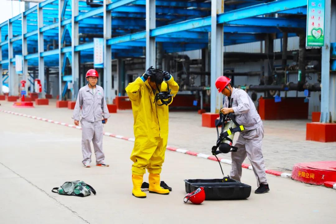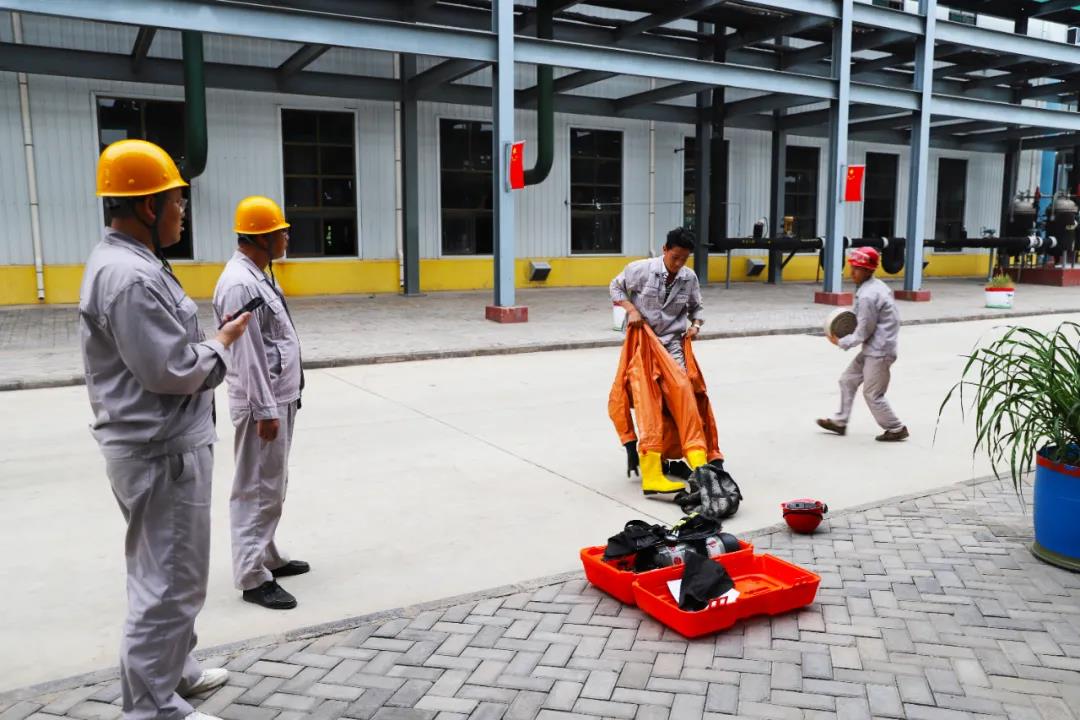 众所周知,作为化工企业,员工的安全处置和应急能力显得尤为重要。为加强生产一线干部员工应急处置能力,免于在事故状态下因不会使用或对防护用品使用不当,影响应急处置或造成人员伤害。6月11日-12日,公司组委会开展了从“火灾报警使用——轻型防化服和空气呼吸器佩戴——消防设施使用”的实操评比。